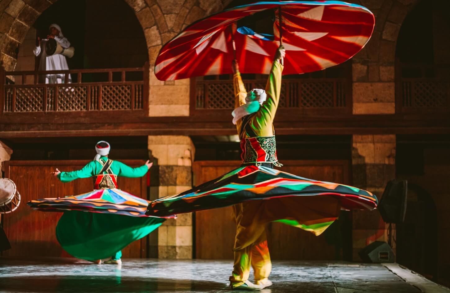 The Tanoura show at Wekalat El Ghoury in Cairo is one of the most exciting performances of Egyptian folk music. Enjoy a wonderful oriental evening with the traditional Egyptian dance group “Raqsat Al-Tanura.”